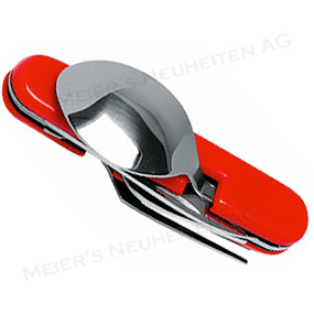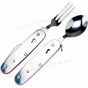 Beschreibung: Taschenmesser 4-teilig trennbar (Gabel, Löffel, Messer, Büchsenöffner)
