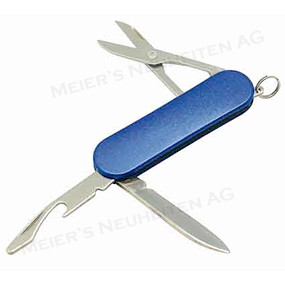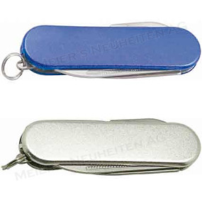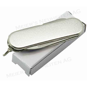Die Oberfläche dieses Taschenmessers im metall-brushed Look wirkt äusserst edel. Dieses Messer verfügt über ein Messer, Schere sowie ein Kapselheber. Mittels Ring kann das Messer am Schlüsselanhänger befestigt werden.
