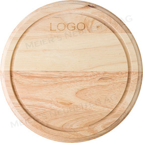 Naturholzbrett mit Käsebestecken für Hobelkäse, Hartkäse und Weichkäse. Brett Ø 25cm. Galvanische Beschriftung bis 40 x 15mm auf das grosse Messer. Das Set ist in einem Geschenkkarton mit Klarsichtdeckel verpackt.