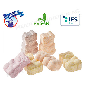 Bemerkungen: Ahoj-Brause Super-Bären prickeln mit den Mineralien (Calcium, Magnesium und Zink), Vitamin C und Traubenzucker. In den brausenden Geschmacksrichtungen Banane, Waldmeister, Kirsche und Blaubeere.