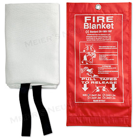 Die Decke 1m x 1m ist aus unbrennbarer Glasfaser für ein schnelles öffnen hat es eine Zugschlaufe. Standard EN-1869-1997
